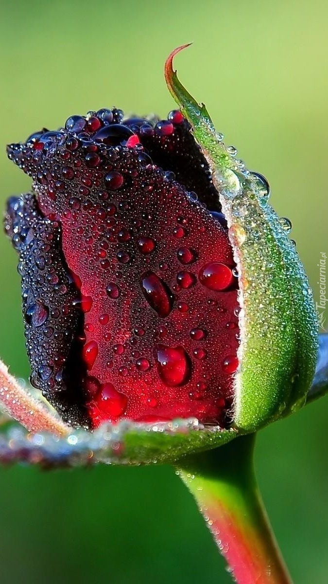 Edytor tapety: Pąk czerwonej róży w kroplach wody