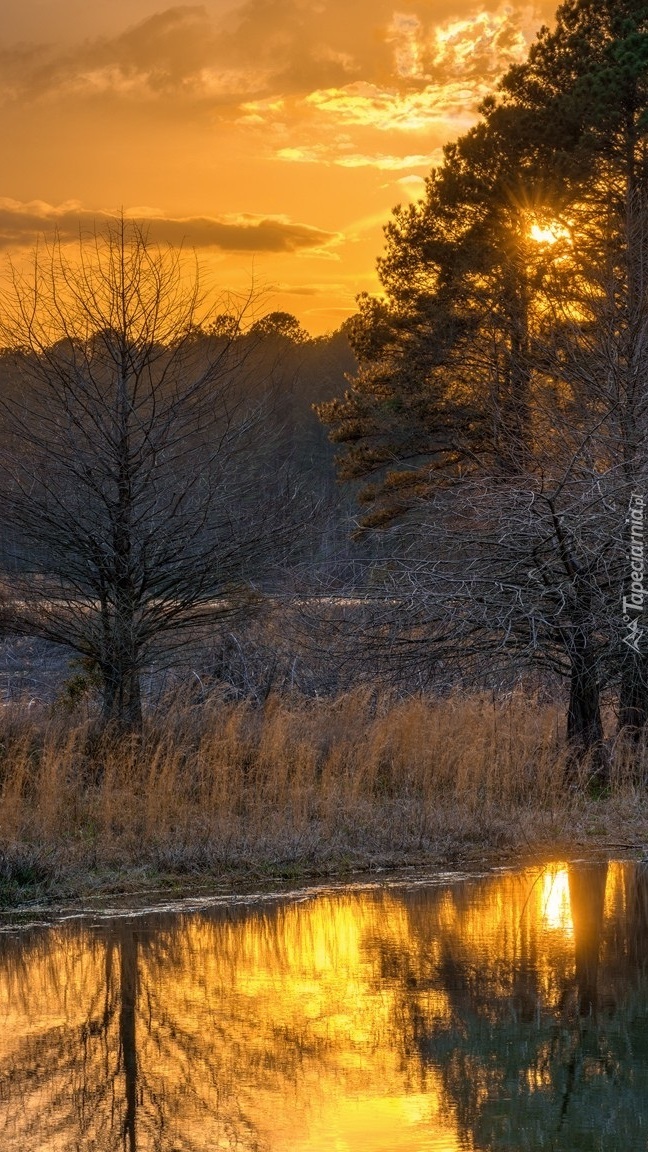 Edytor tapety: Rzeka z lasem o zachodzie słońca