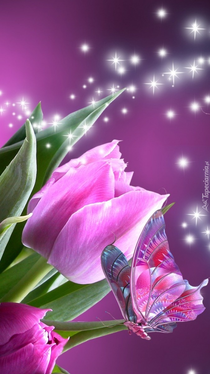 Edytor tapety: Motyl wśród tulipanów