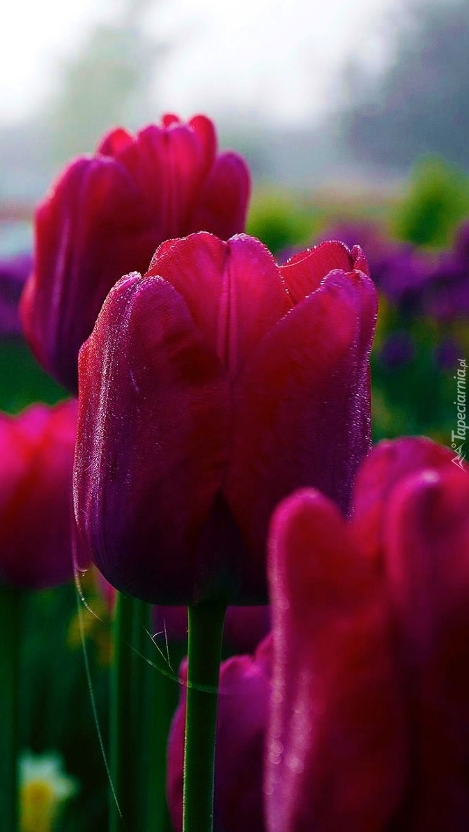 Edytor tapety: Pajęczyna na bordowych tulipanach