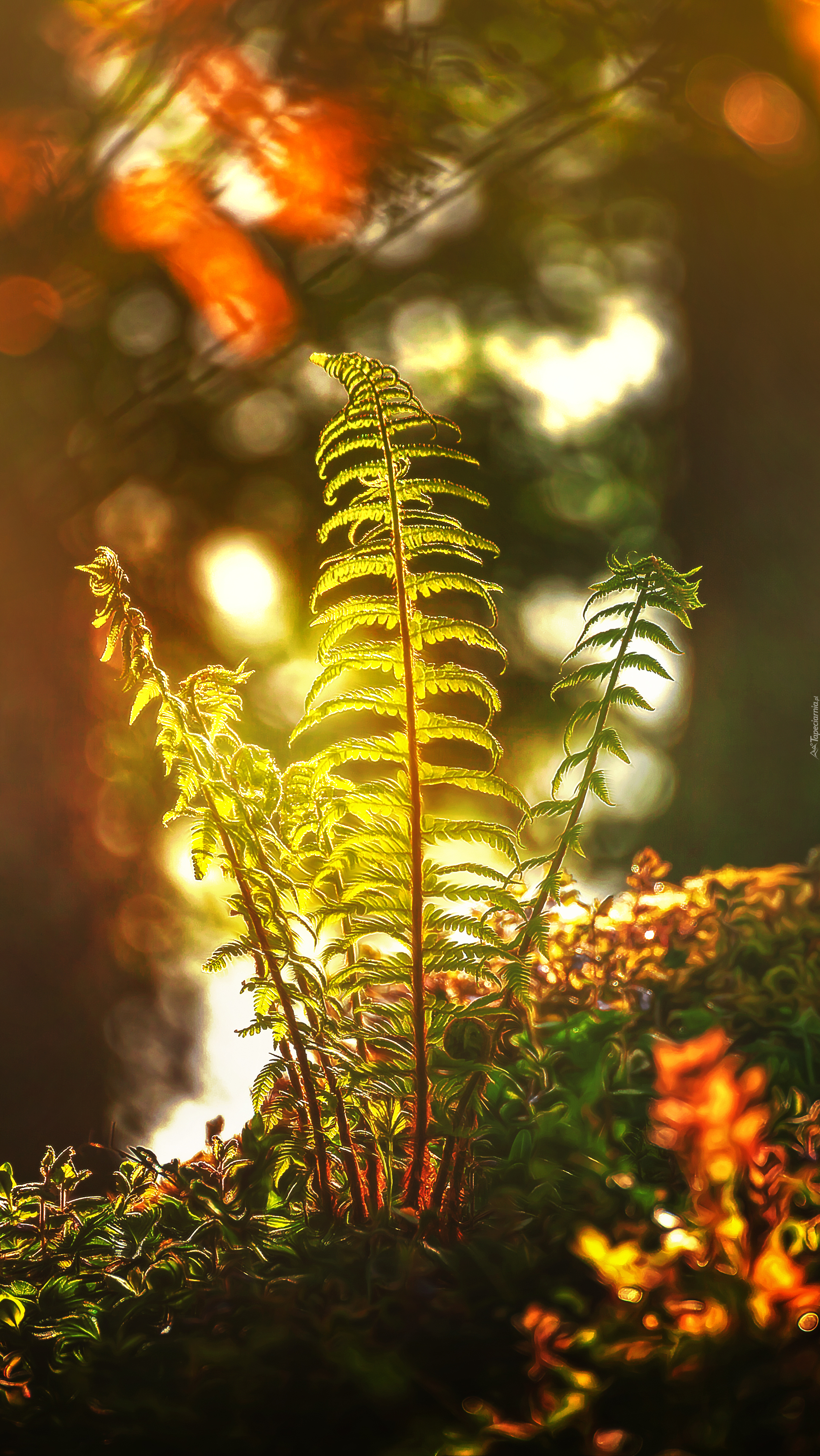 Edytor tapety: Promienie słońca rozświetlają paproć