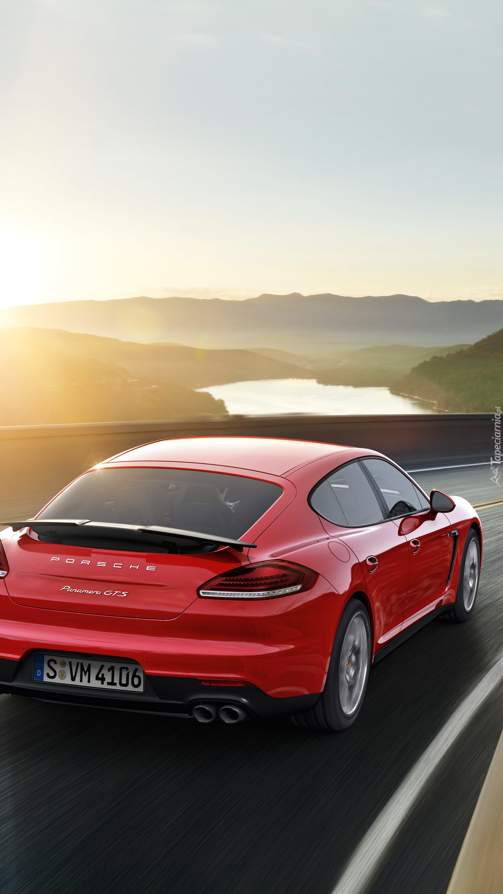 Edytor tapety: Czerwone Porsche mknie po drodze