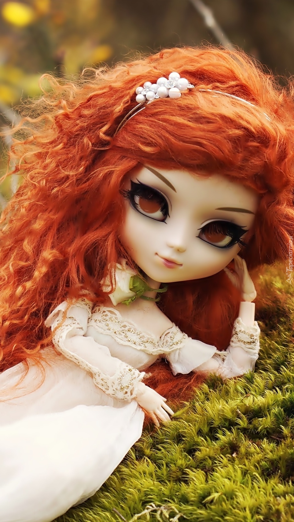 Edytor tapety: Rudowłosa laleczka w sukni ślubnej