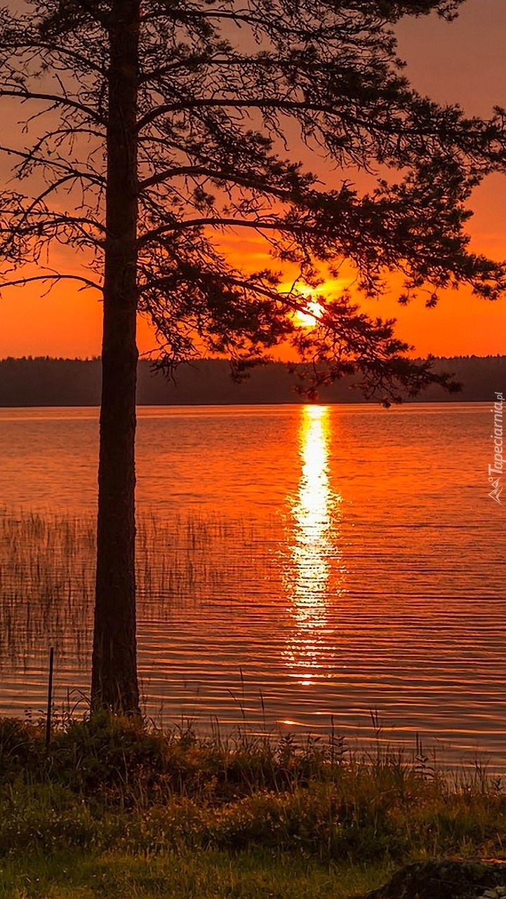 Edytor tapety: Odbicie zachodzącego słońca w jeziorze