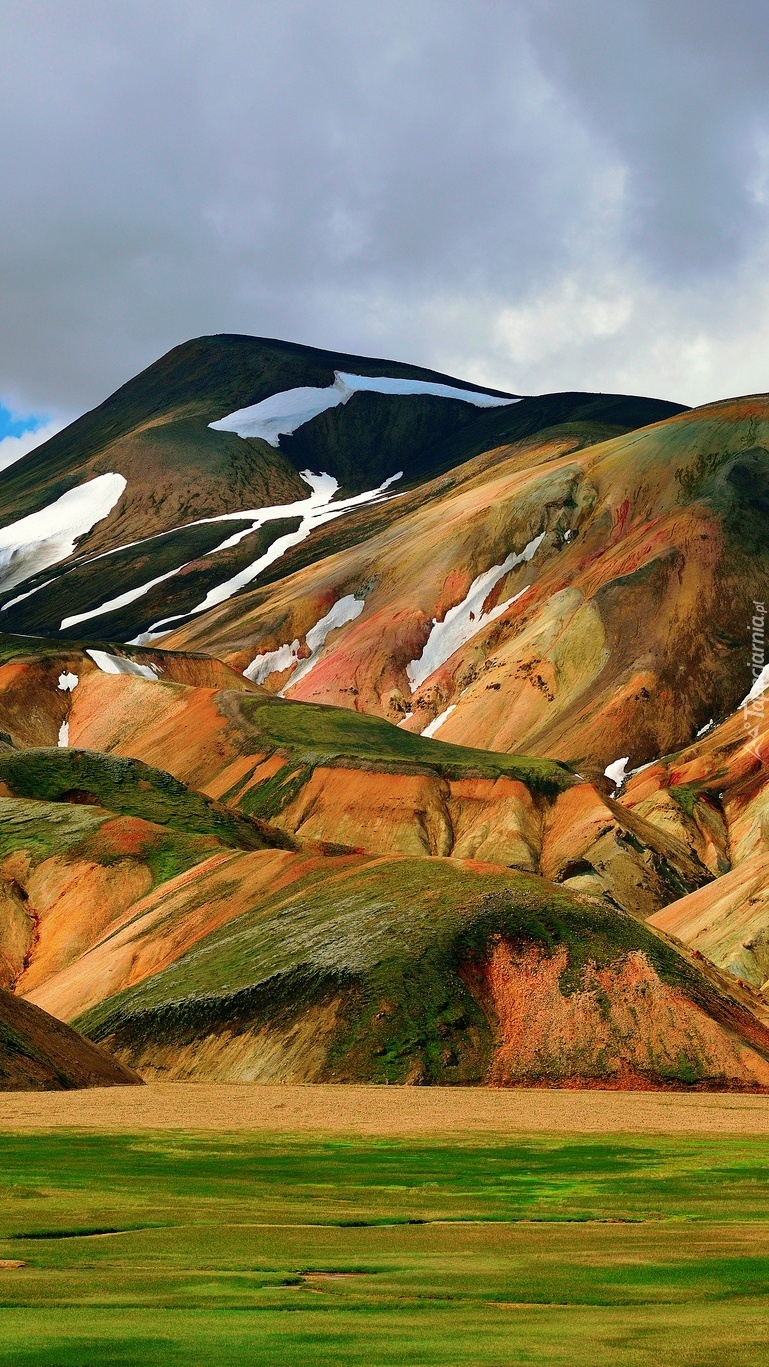 Edytor tapety: Chmury nad kolorowymi górami