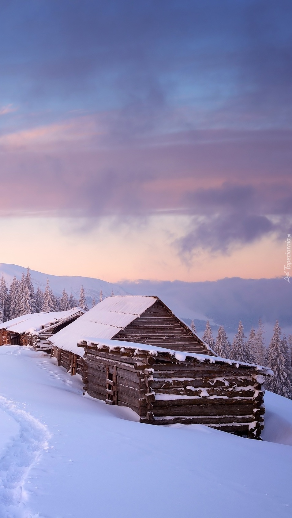 Edytor tapety: Drewniane domki zasypane śniegiem