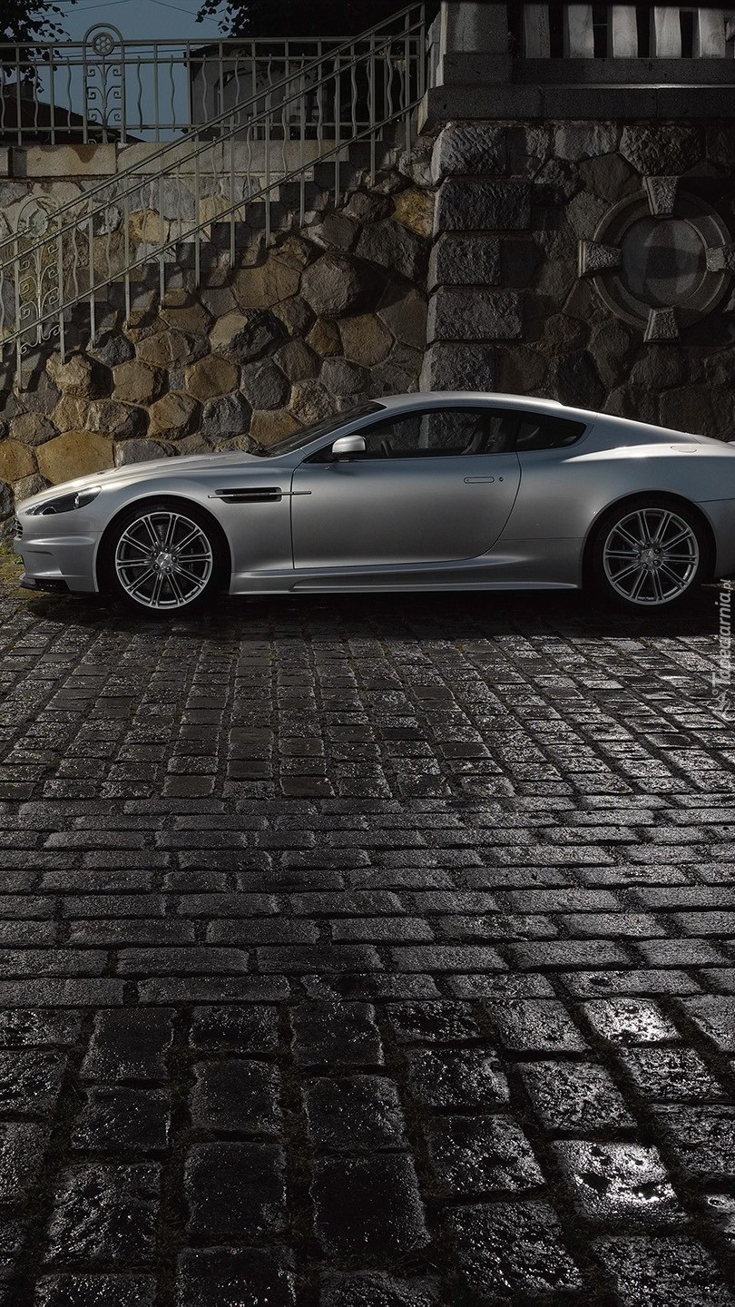 Edytor tapety: Srebrny Aston Martin DBS na bruku