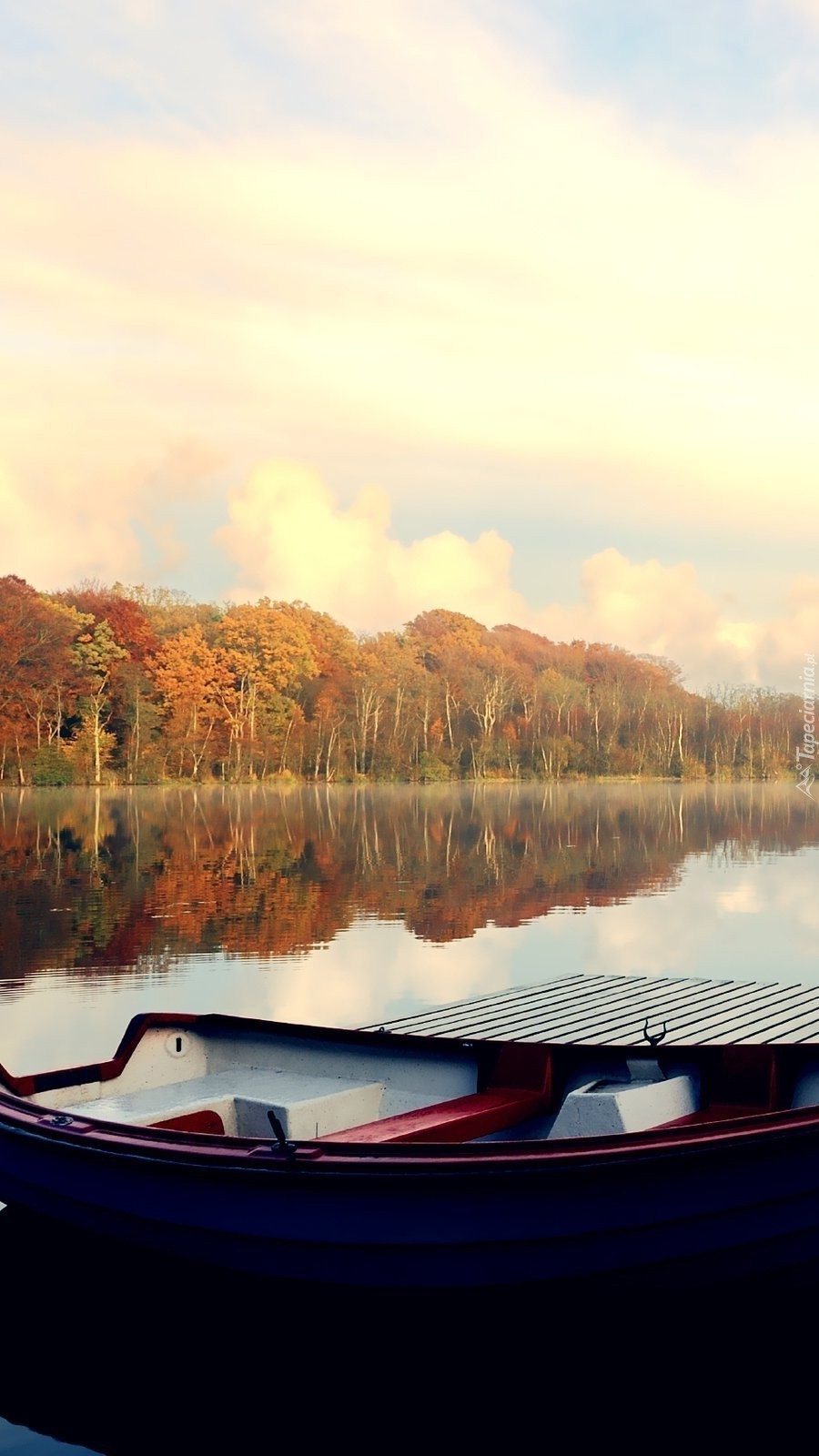 Edytor tapety: Łódka przed pomostem nad jeziorem