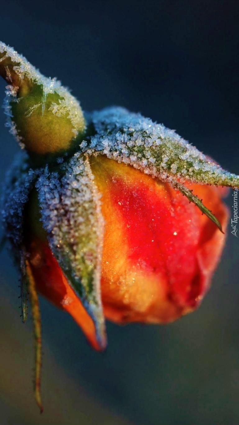 Edytor tapety: Szron na pąku róży