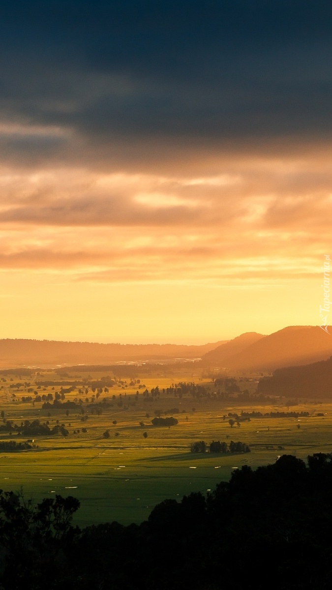Edytor tapety: Pola i góry we mgle
