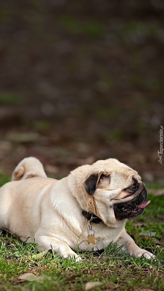Edytor tapety: Mops na trawie
