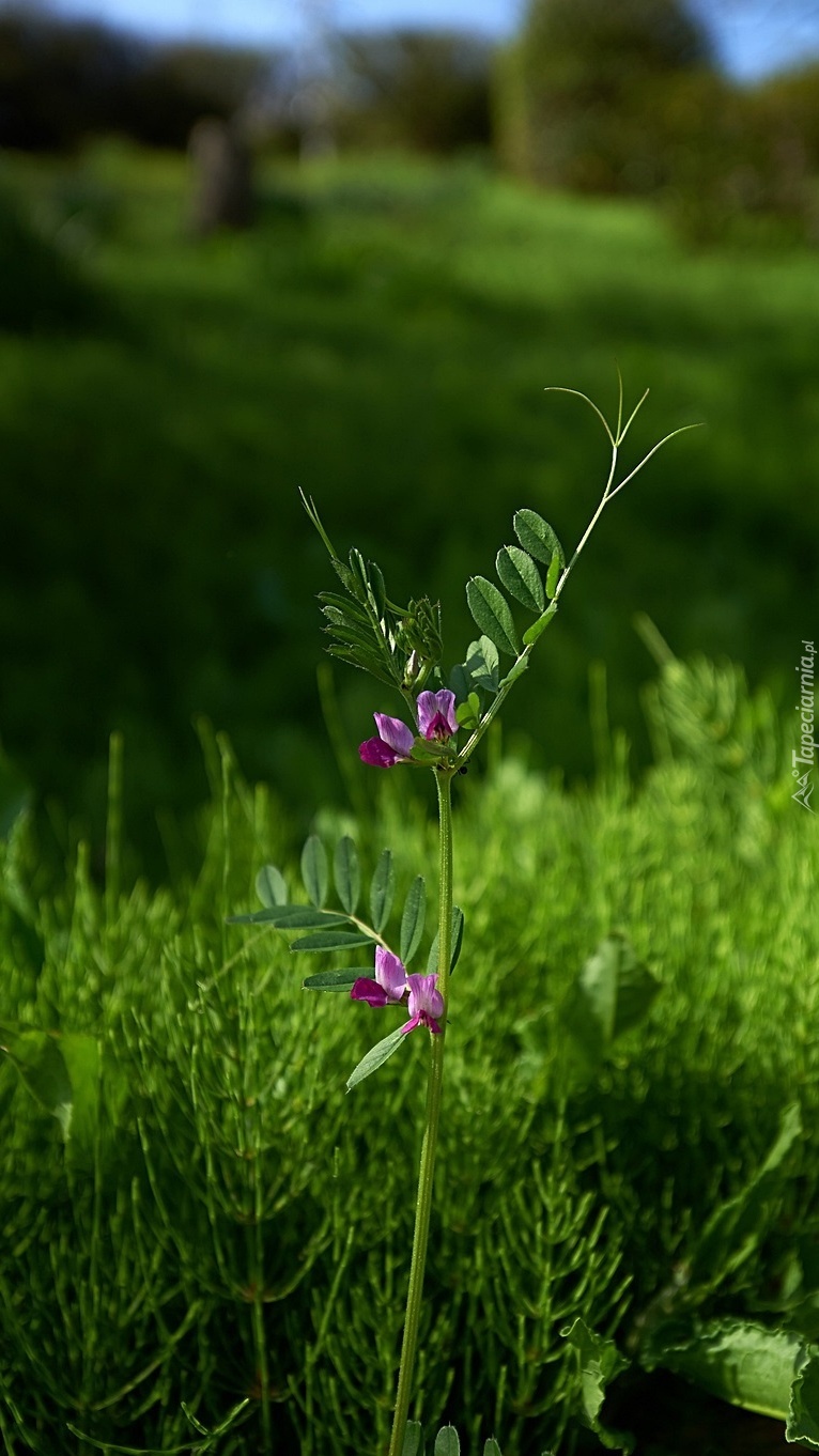 Edytor tapety: Drobne fioletowe kwiatki pośród zieleni