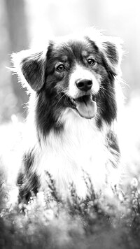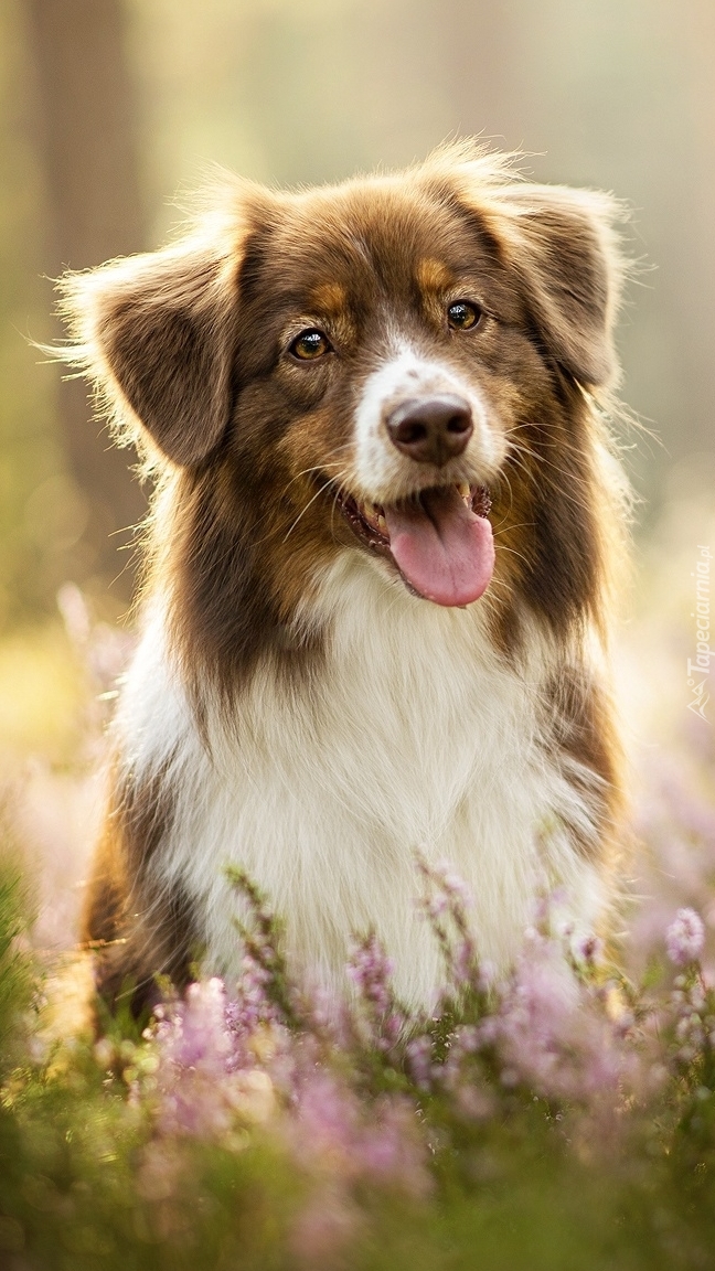Edytor tapety: Owczarek australijski we wrzosach