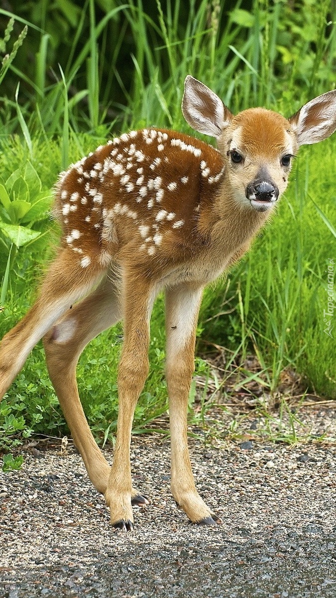 Edytor tapety: Młoda sarenka na drodze