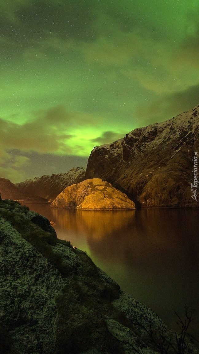 Edytor tapety: Zorza polarna nad rzeką w górach