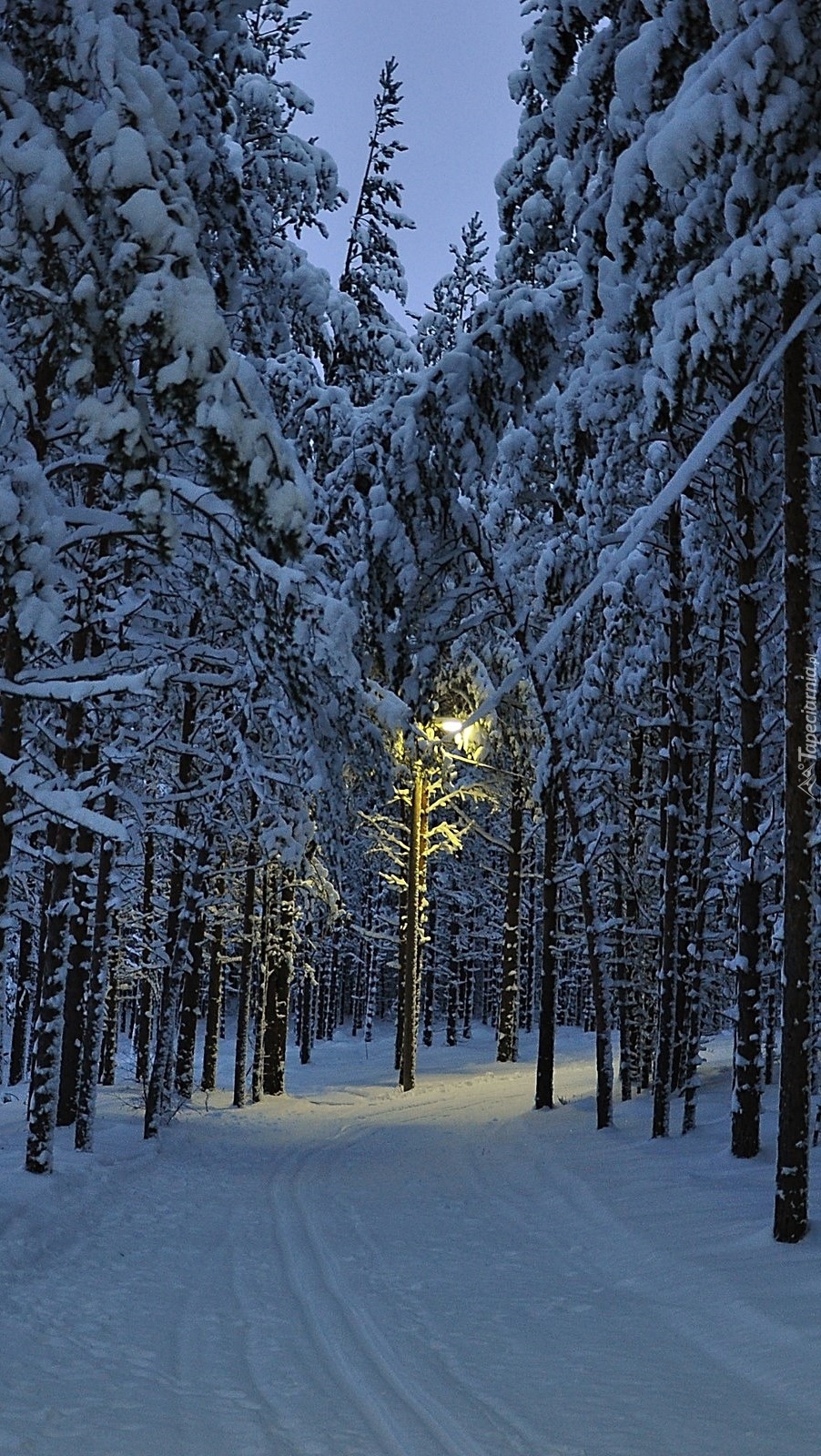 Edytor tapety: Zimowa droga w lesie o zmroku