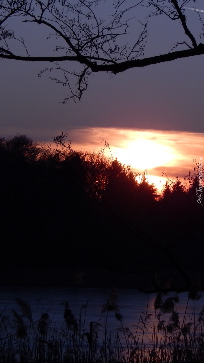 Edytor tapety: Słońce zachodzi nad lasem