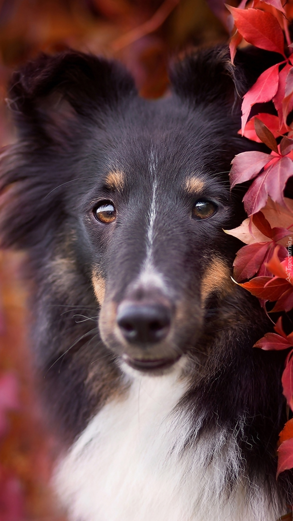 Edytor tapety: Owczarek szetlandzki przy pnączu