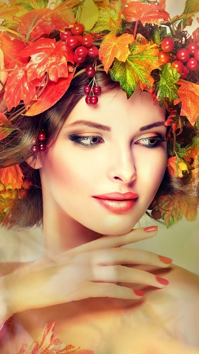 Edytor tapety: Kobieta w liściastym wianku na głowie