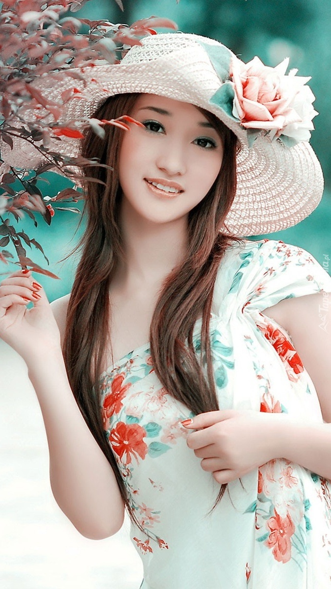 Edytor tapety: Dziewczyna w kapeluszu udekorowanym różą