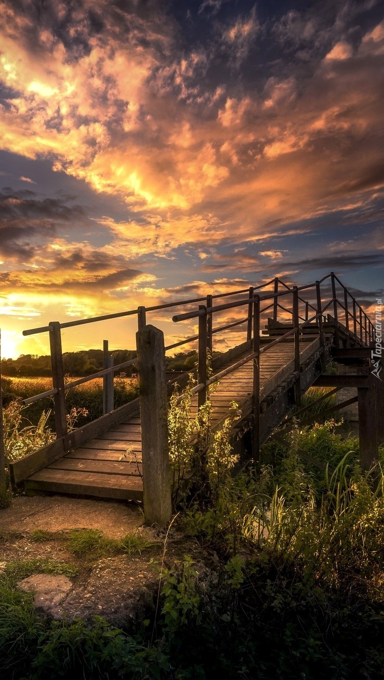 Edytor tapety: Drewniany mostek w zachodzącym słońcu