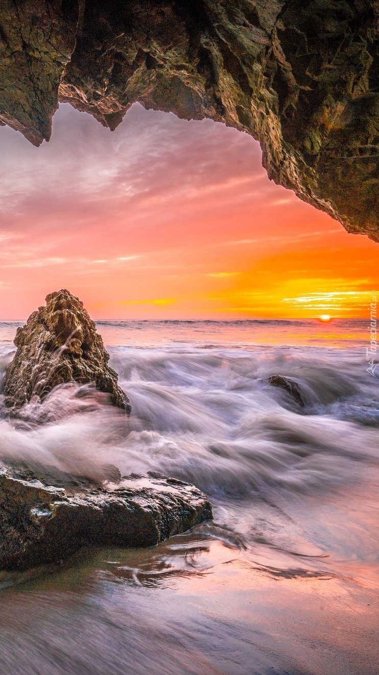 Edytor tapety: Widok z groty na zachodzące słonce
