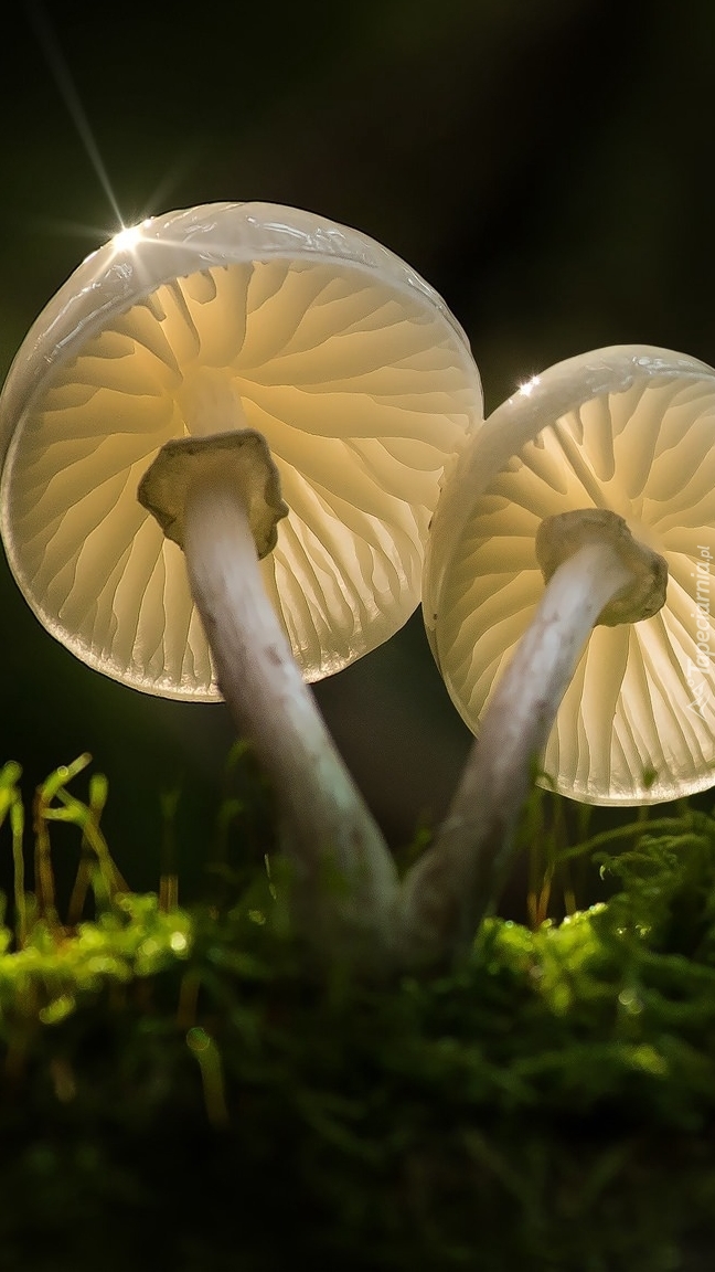 Edytor tapety: Dwa grzyby na ściółce w mchu