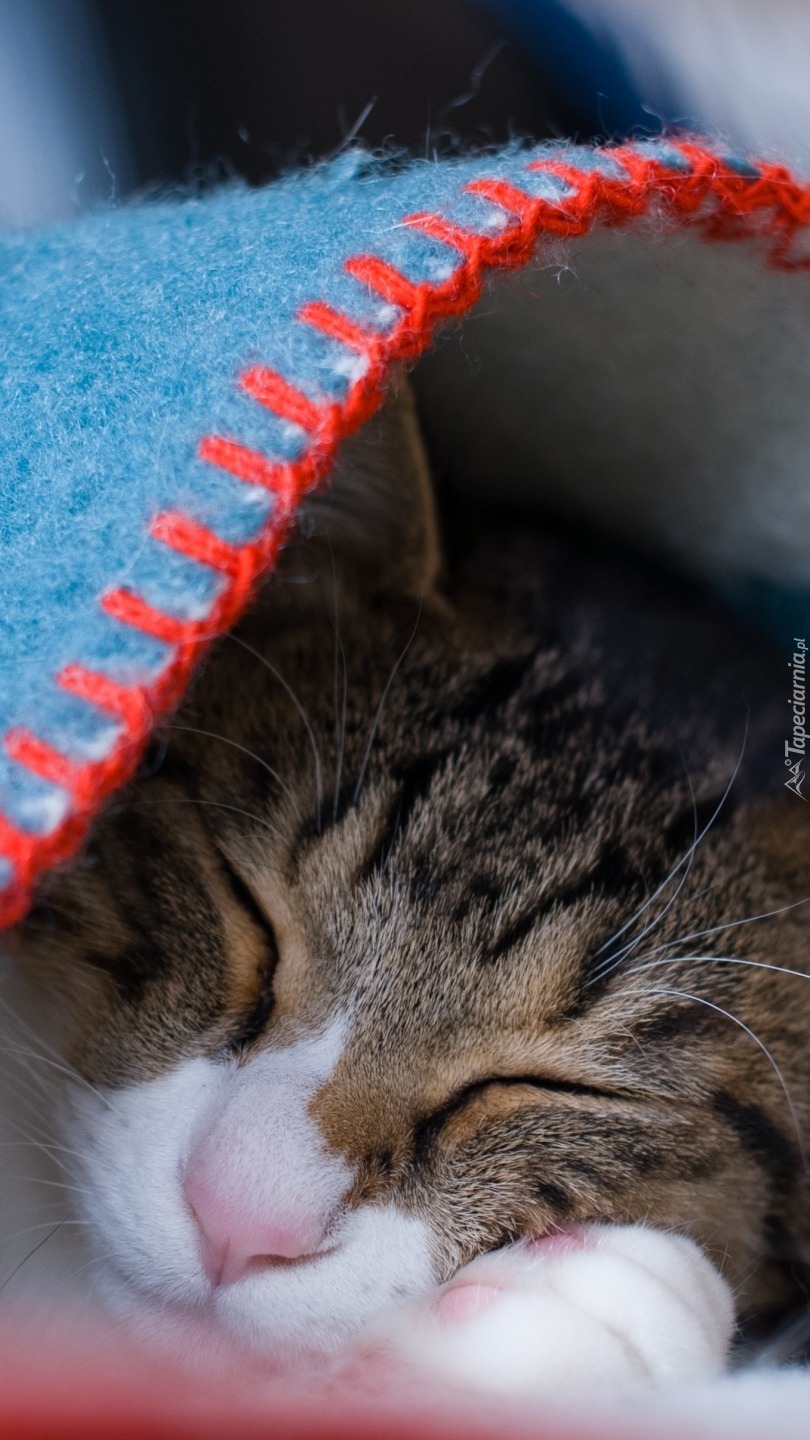 Edytor tapety: Kotek pod niebieskim kocykiem