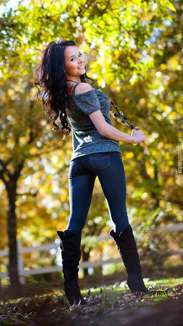 Edytor tapety: Uśmiechnięta brunetka w kozakach