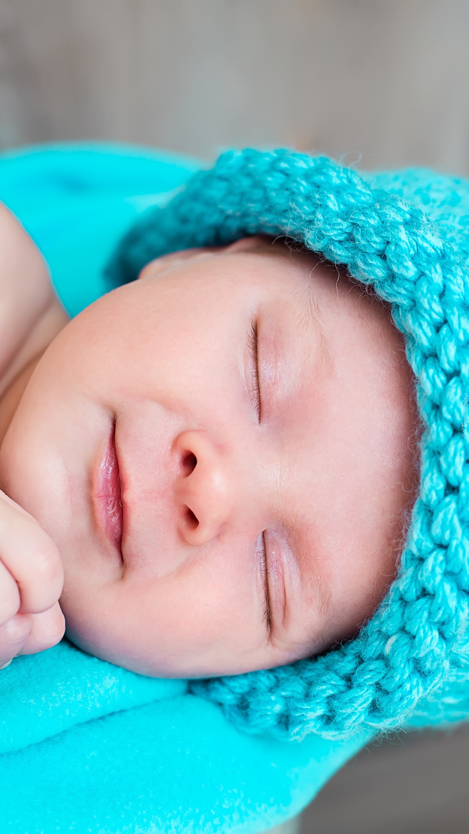 Edytor tapety: Niemowlę w turkusowej czapeczce
