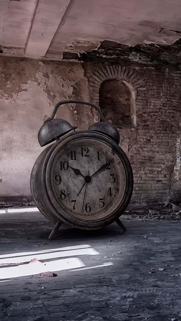 Edytor tapety: Budzik w zaniedbanym wnętrzu