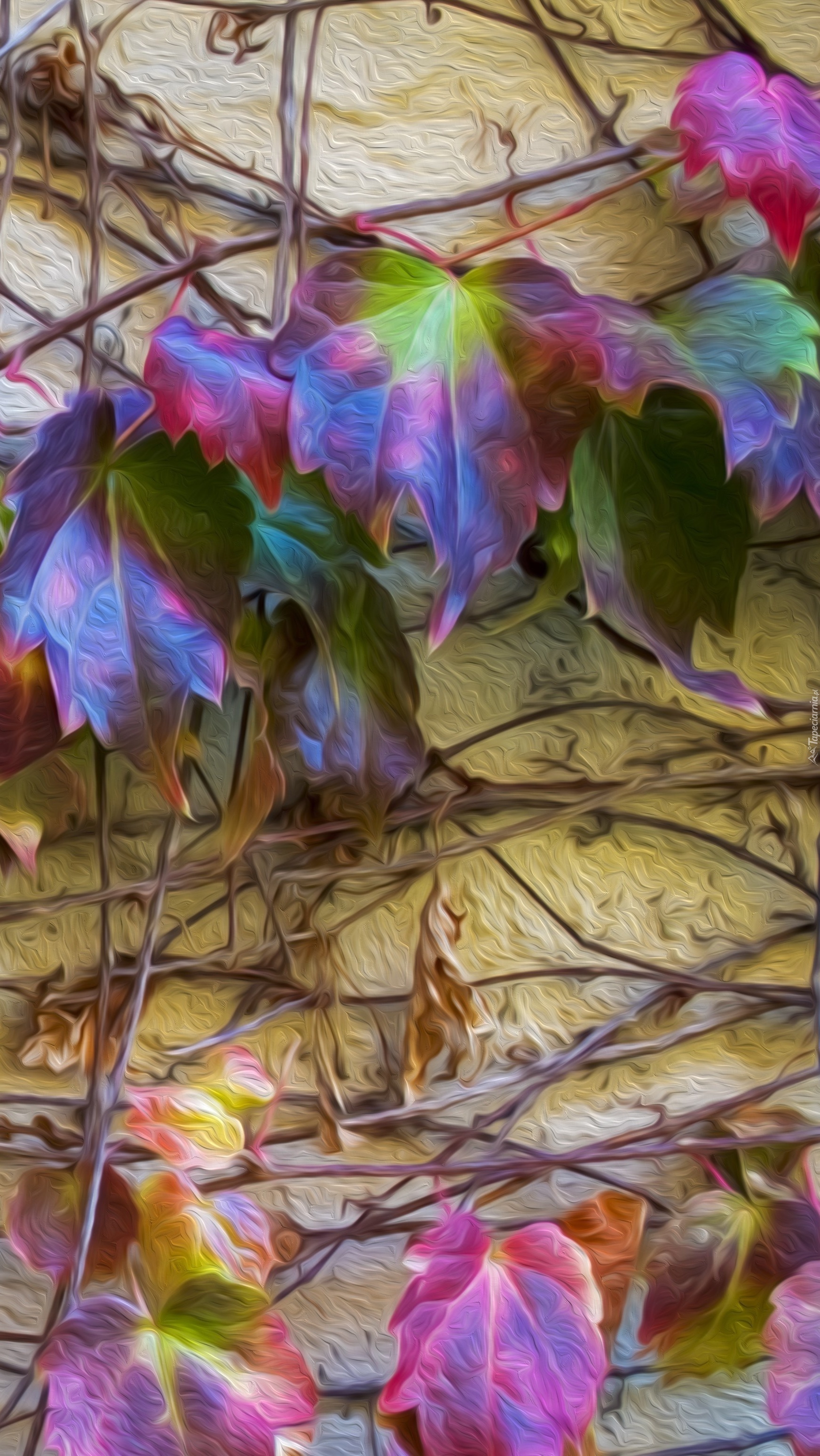 Edytor tapety: Kolorowe liście pnące się po budynku