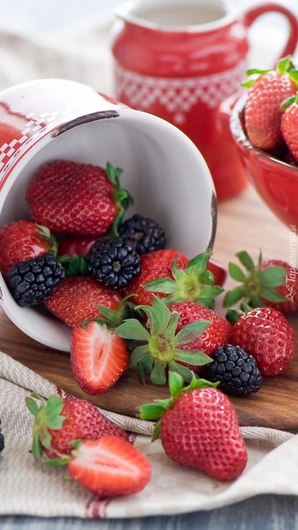 Edytor tapety: Truskawki i jeżyny wypadły z kubka