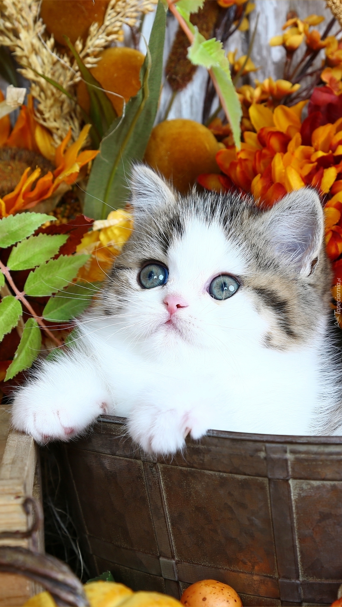 Edytor tapety: Mały kotek wśród kwiatów