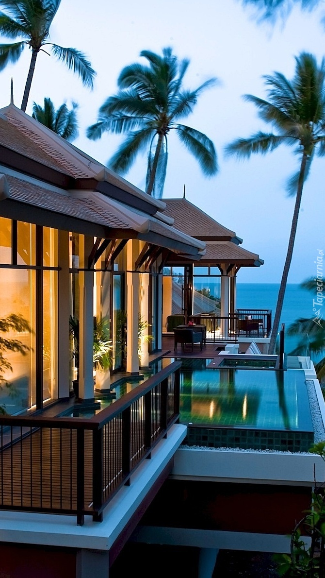 Edytor tapety: Hotel z basenem w tropikach