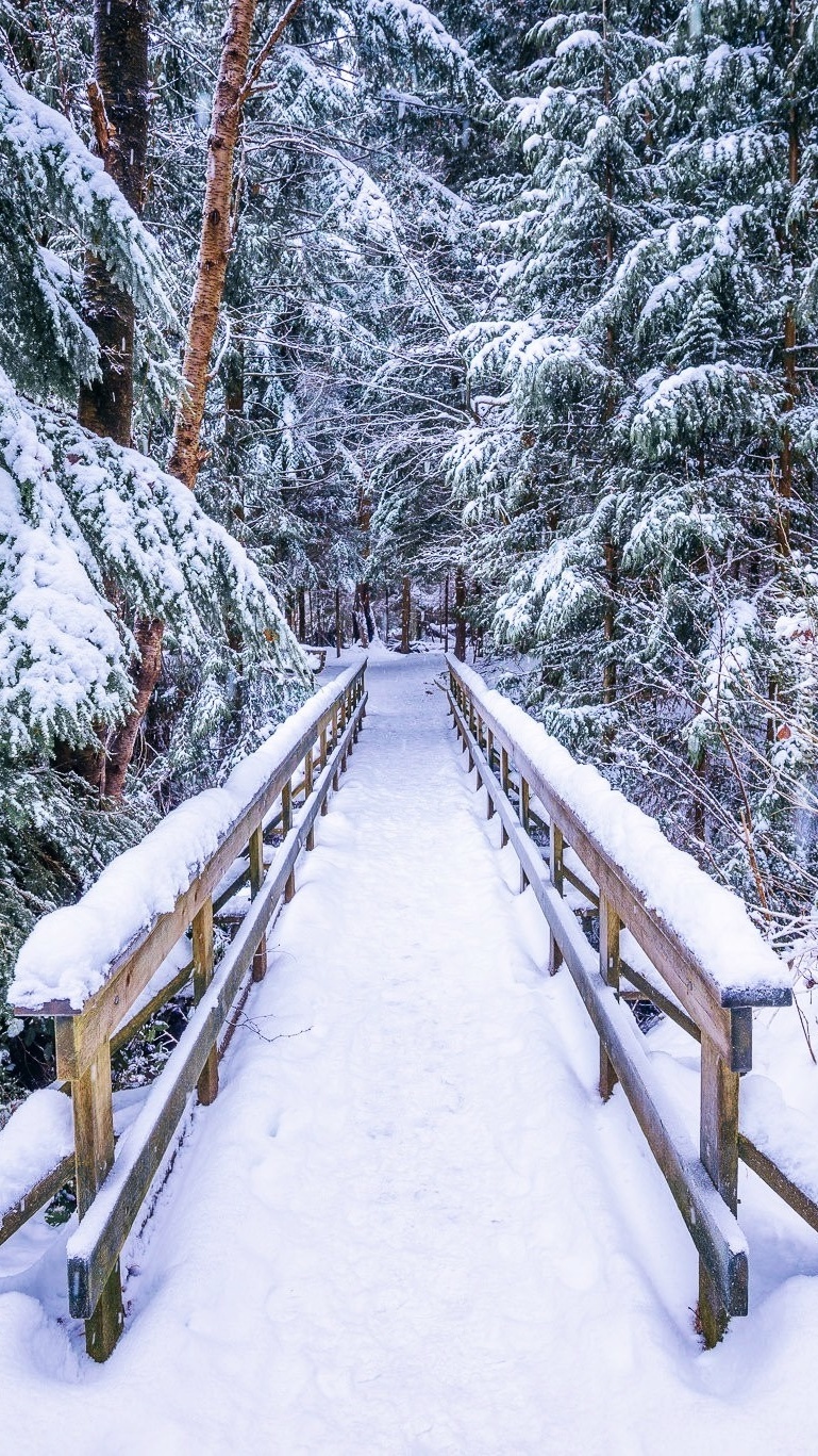Edytor tapety: Mostek drogą do zimowego lasu