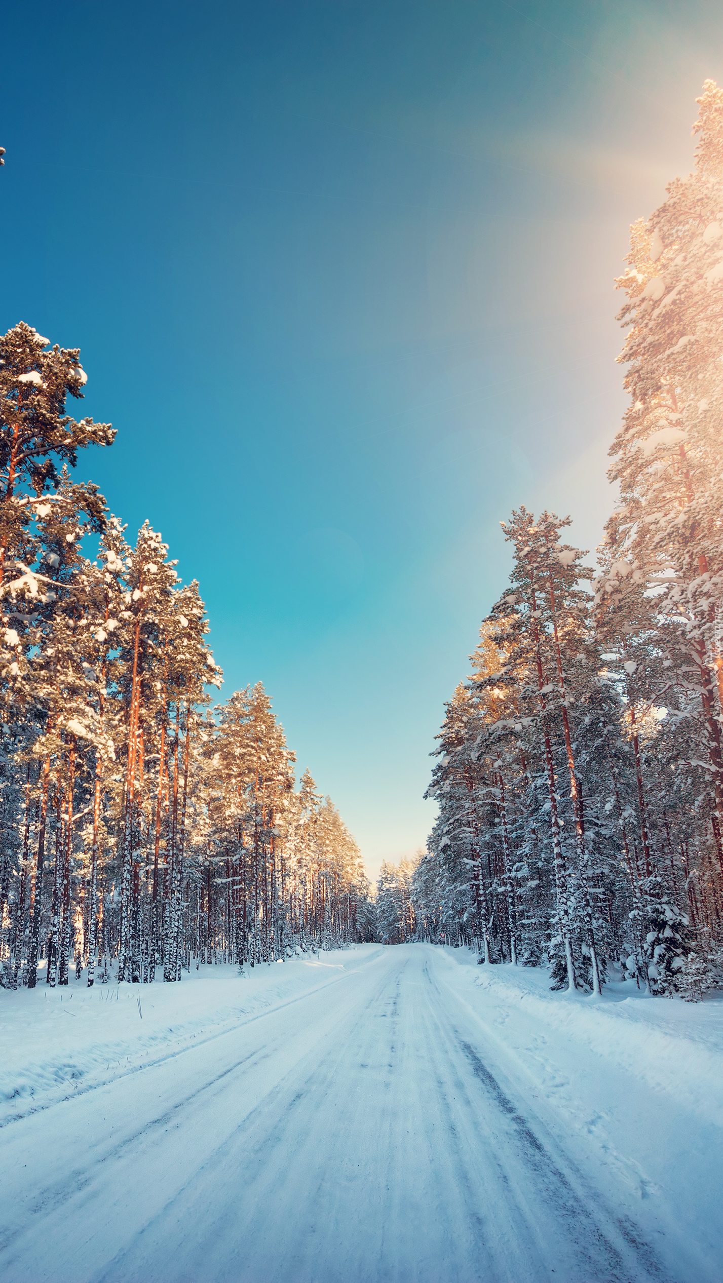 Edytor tapety: Zimowa leśna droga o poranku