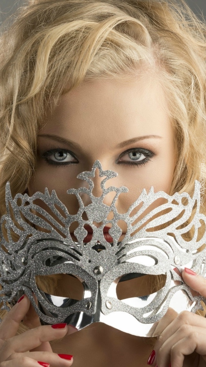 Edytor tapety: Blondynka w makijażu z sylwestrową maską