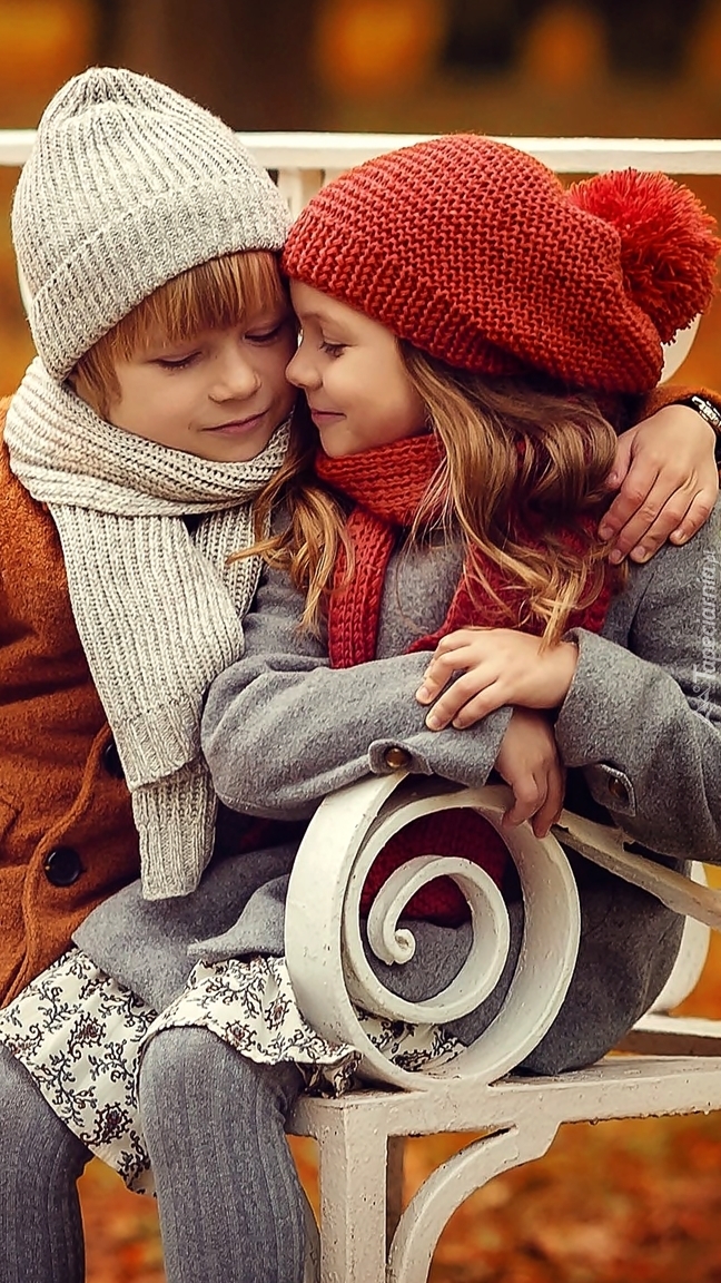 Edytor tapety: Chłopiec i dziewczynka na ławce