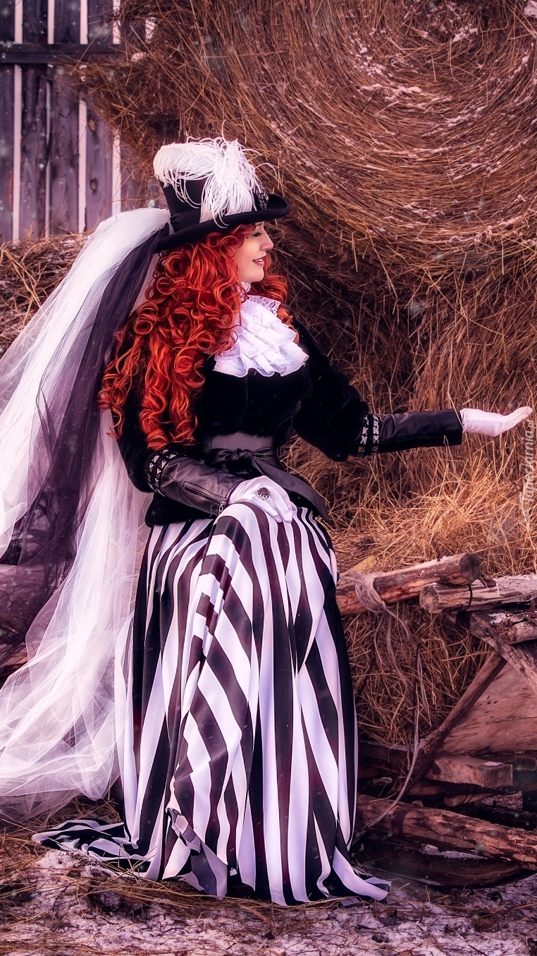 Edytor tapety: Kobieta przy stercie siana