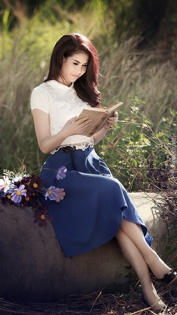 Edytor tapety: Zaczytana kobieta i kwiaty