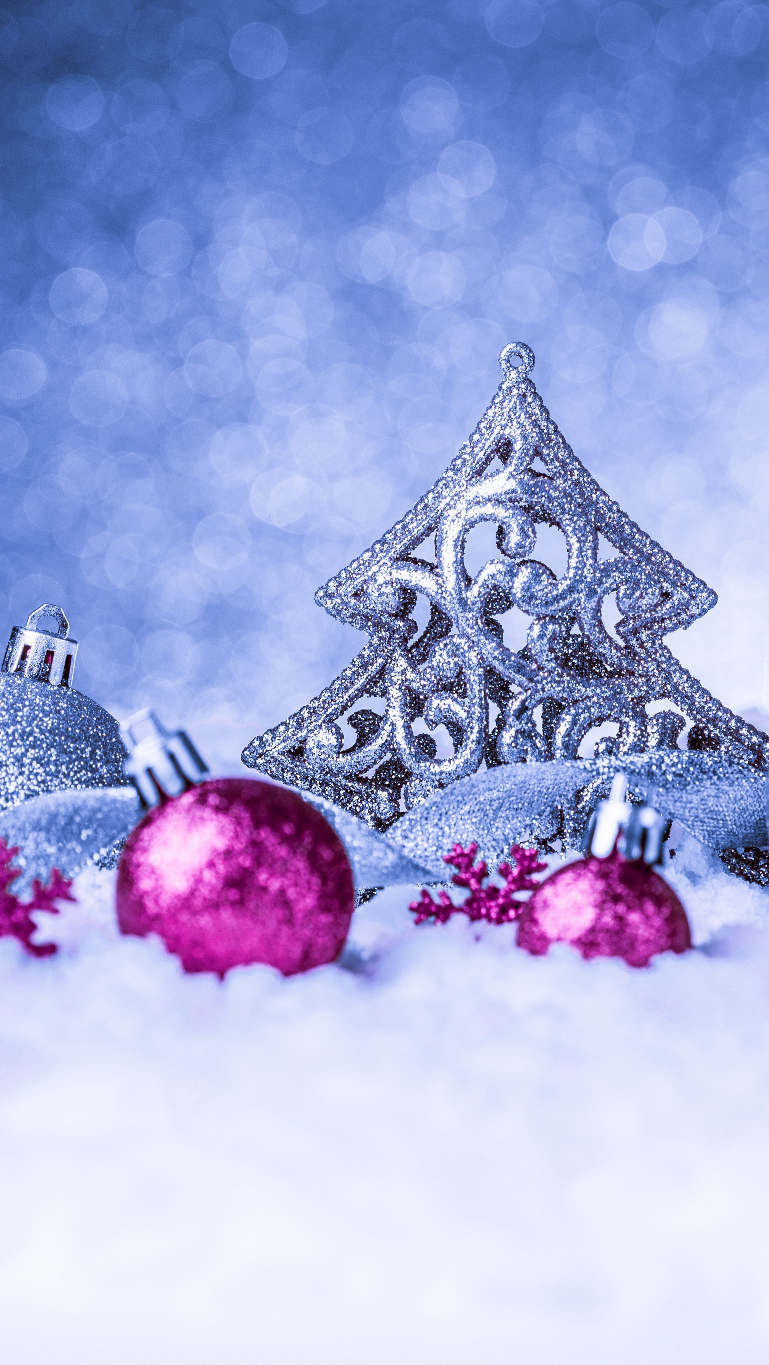 Edytor tapety: Bombki w śniegu ze srebną choinką
