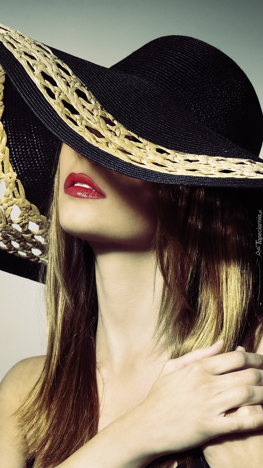 Edytor tapety: Tajemnicza blondynka w kapeluszu