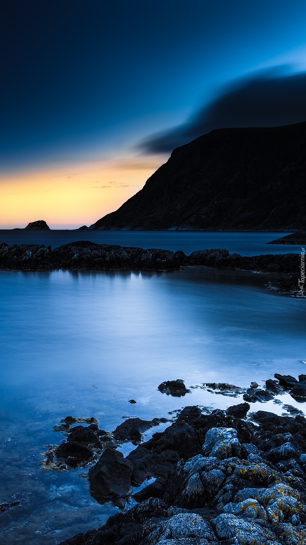 Edytor tapety: Skały morskie o zachodzie słońca