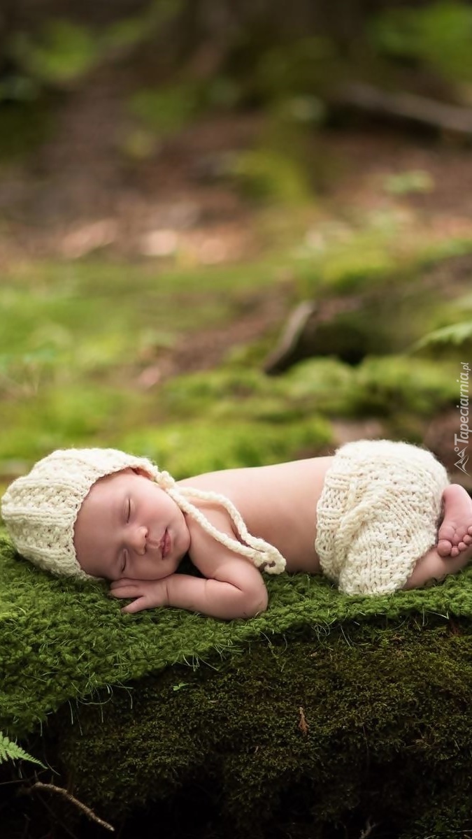 Edytor tapety: Śpiące niemowlę na mchu w lesie