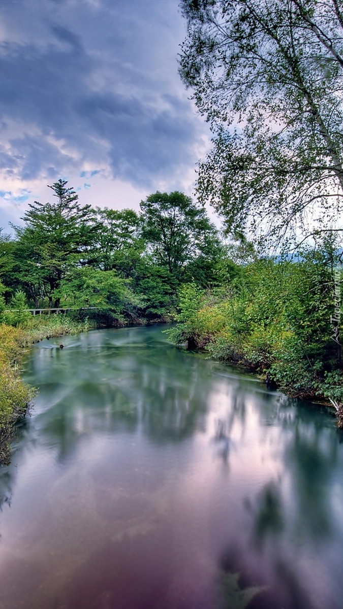 Edytor tapety: Chmury nad rzeką i zaroślami
