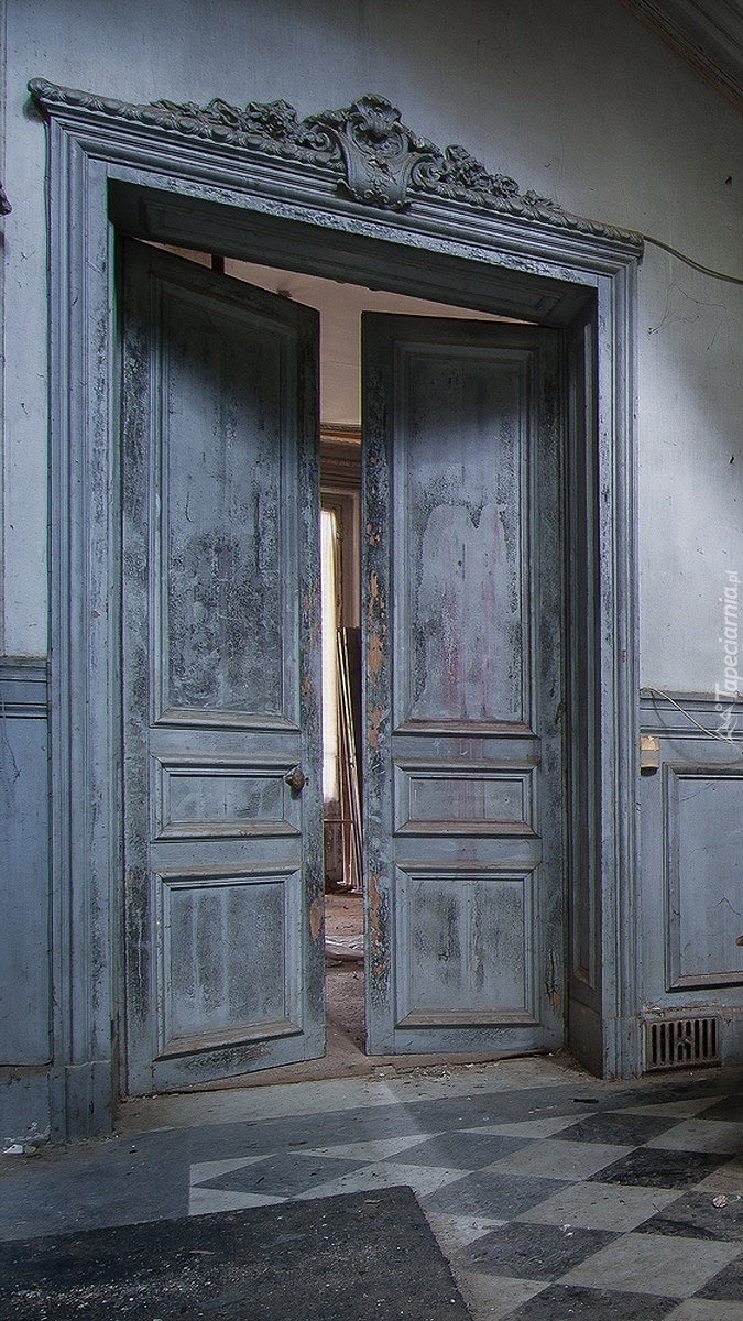 Edytor tapety: Zaniedbane duże drzwi i posadzka