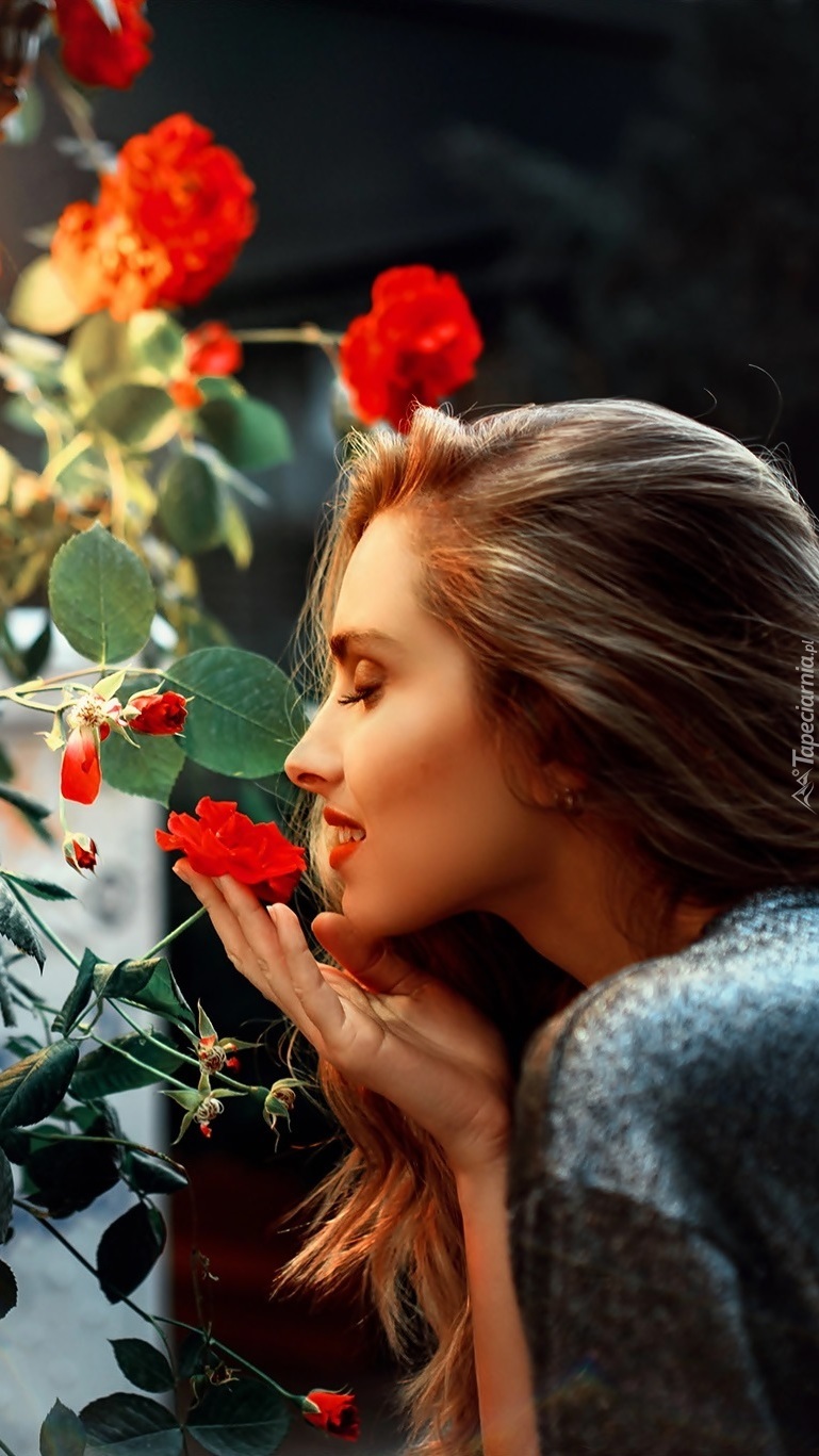 Edytor tapety: Kobieta wąchająca różę