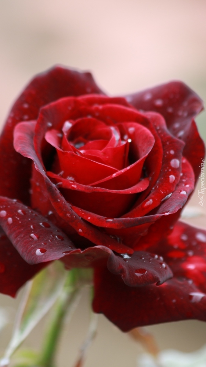 Edytor tapety: Pąsowa róża w kropelkach