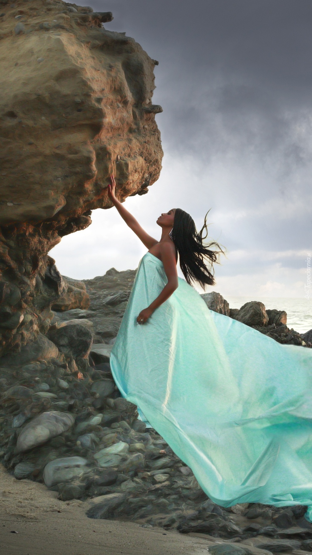 Edytor tapety: Kobieta w sukni obok skały